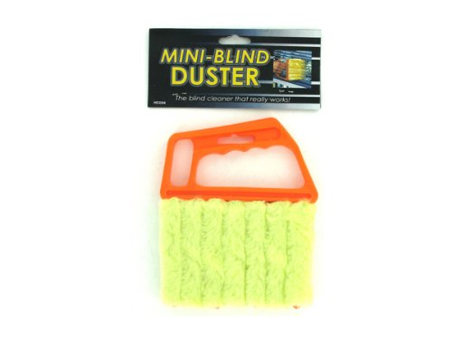 This mini blinds duster is made of sturdy orange plastic with 7 rust proof metal rollers that are covered with a washable plush fabric. The roller section is 5" x 3 1/2" the total length 6 1/2" and the handle is 5 1/4" at the rollers x 2 13/16" at it's highest x 1/2" thick. Comes in a poly bag with header card and UPC code.Available in a pack of 24Product Type: Bulk Buys